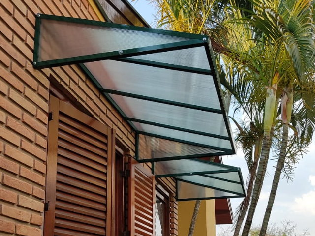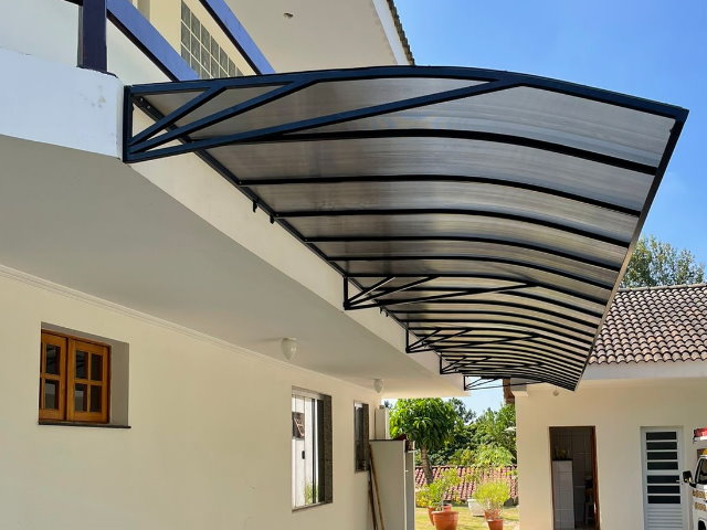 Personalização e Aplicações-O Toldo em Policarbonato é fabricado sob medida, de acordo com cada projeto, com estrutura em alumínio ou aço e tem o acabamento em pintura eletrostática, garantindo assim total resistência às intempéries e um visual impecável. As principais aplicações incluem:-Varandas e Sacadas: Proporciona proteção contra sol e chuva, sem comprometer a luminosidade natural.-Garagens e Estacionamentos: Ideal para proteger veículos contra intempéries, mantendo o espaço iluminado.-Portas e Janelas: Reduz o calor interno e protege contra chuvas leves.-Áreas de Lazer e Gourmet: Cria espaços confortáveis e esteticamente agradáveis para convivência.
